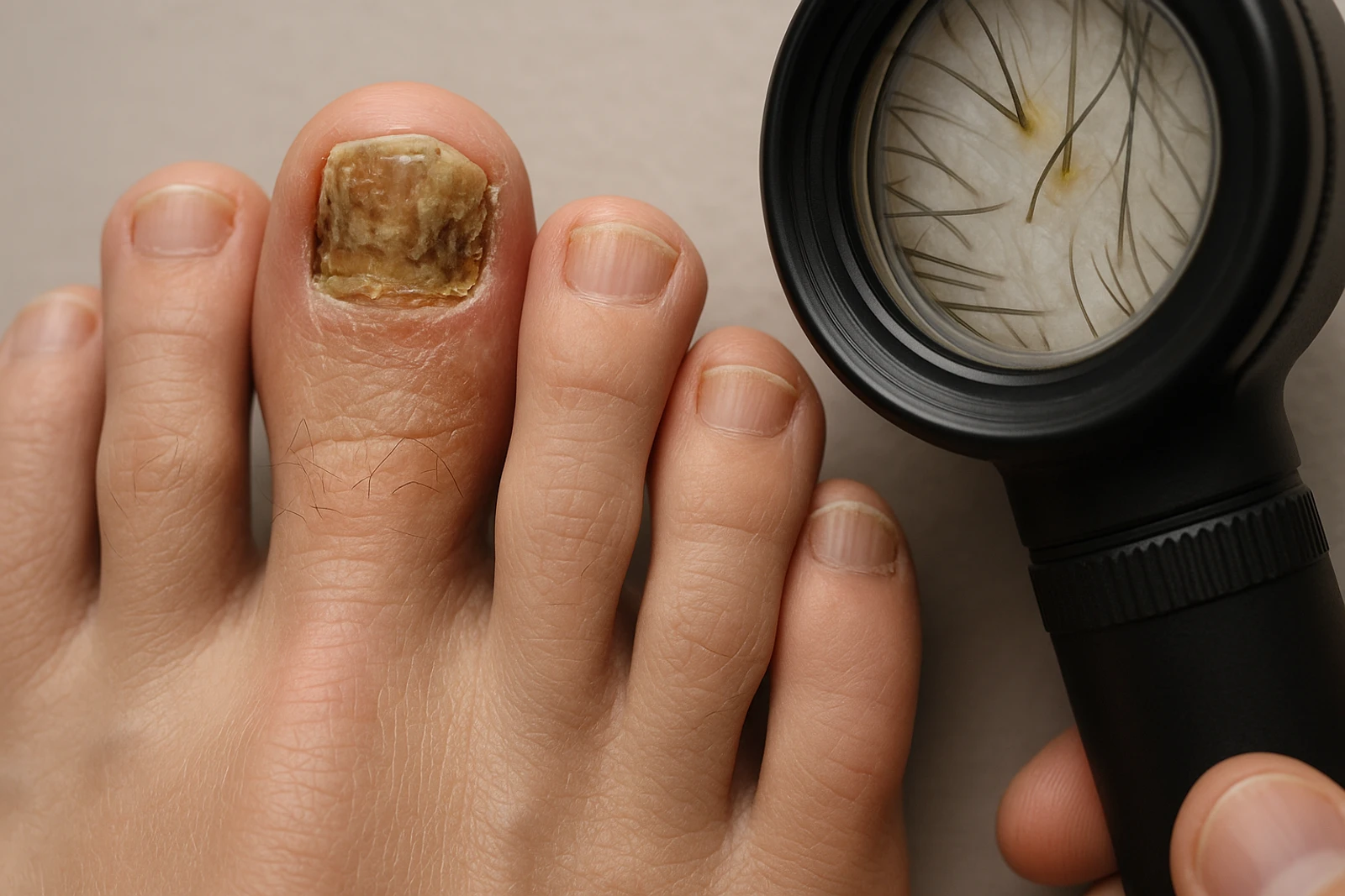 La onicomicosis es una infección por hongos que afecta a las uñas, sobre todo las de los pies. Es muy común porque los hongos prosperan en ambientes cálidos y húmedos (calzado cerrado, sudor, piscinas, duchas), y porque la uña crece lentamente: eso dificulta que el organismo “limpie” la infección por sí solo y hace que los tratamientos necesiten tiempo.