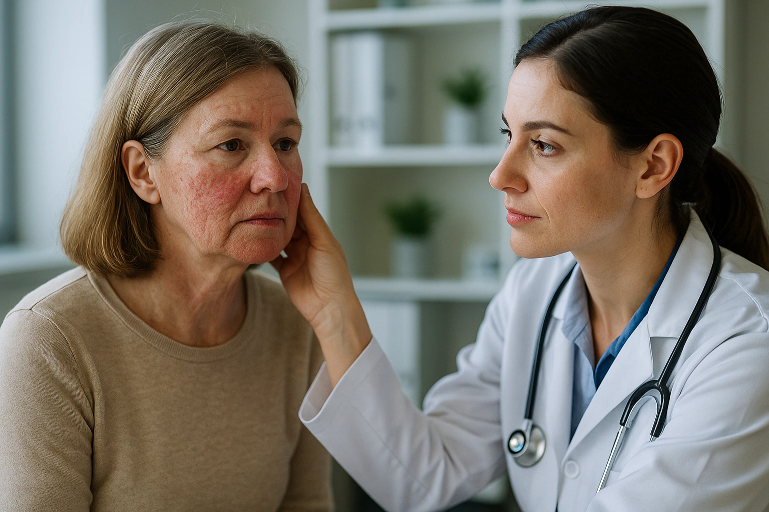 • Enrojecimiento facial persistente: Suele ser el primer signo y puede parecer un simple rubor.